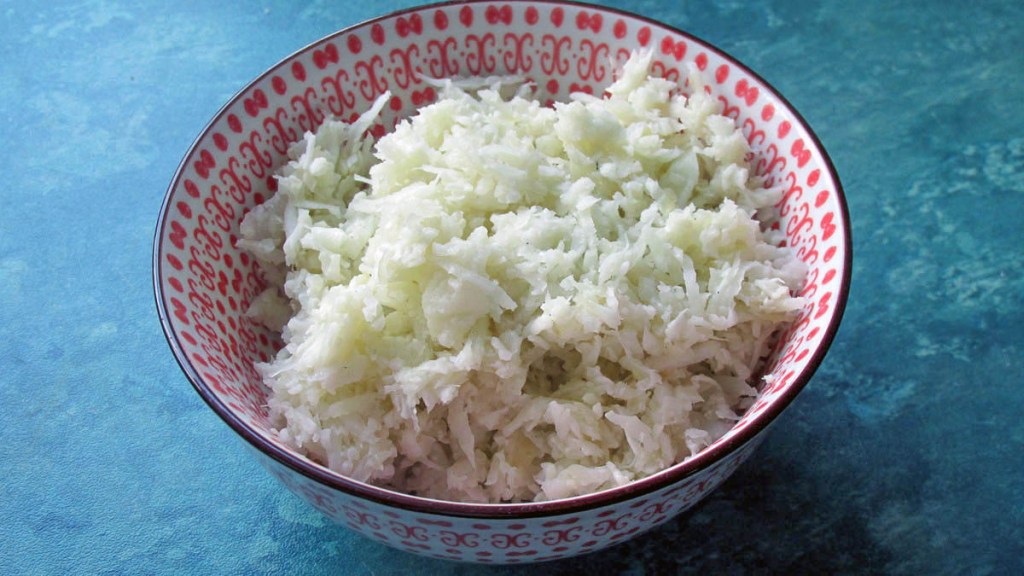 - If you don’t have a food processor you can grate the cauliflower by hand.