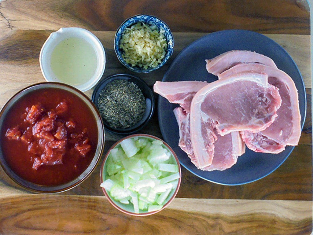 - Pour the chopped tomatoes over the chops and let everything simmer for 10 minutes.