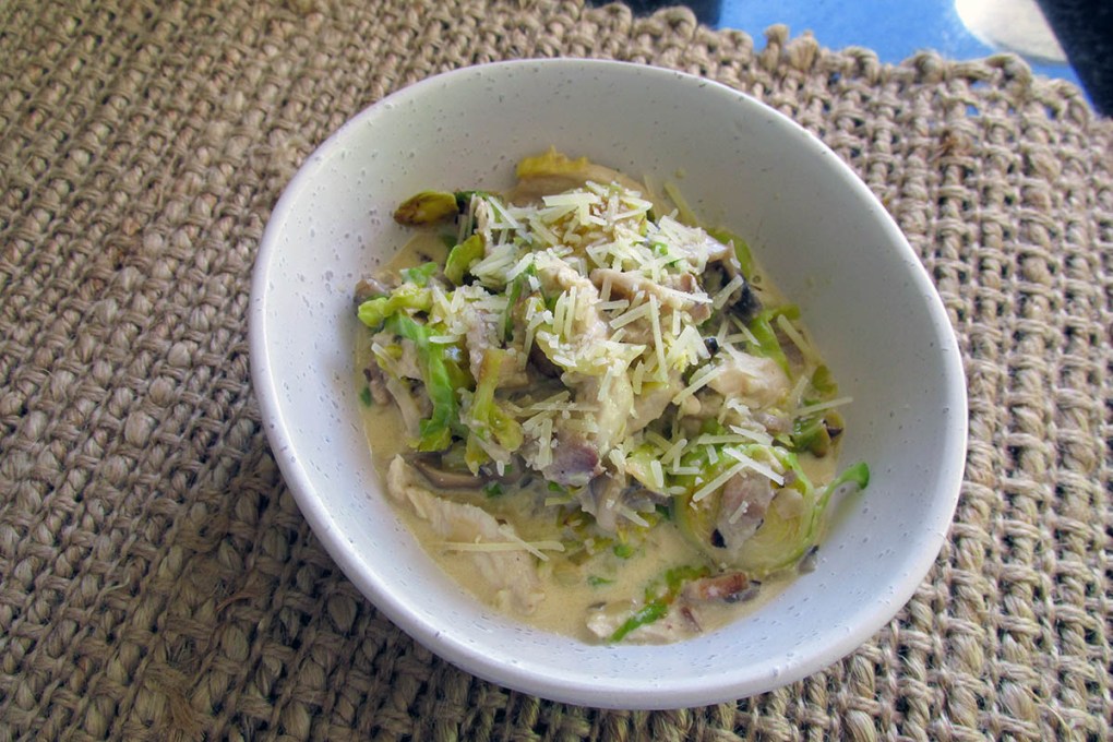 - Mix well to coat all of the chicken and sprouts in the sauce.