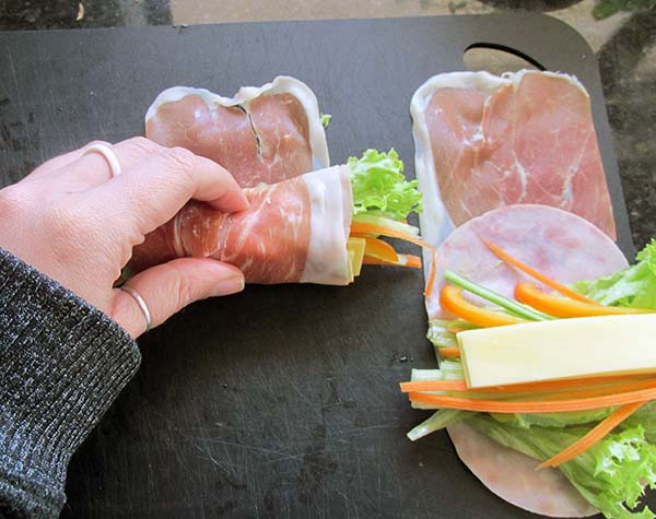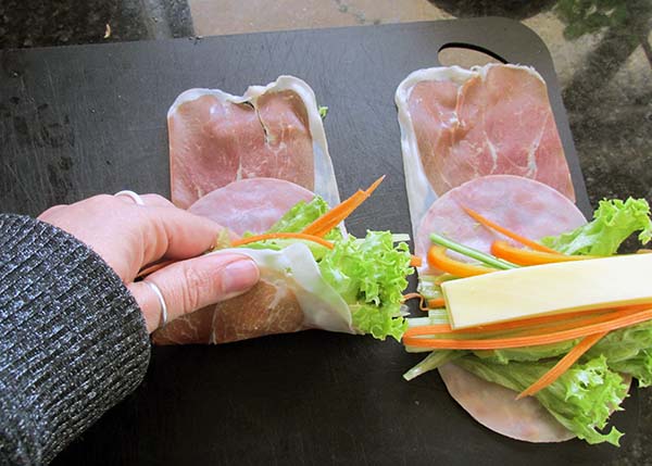 I do love a lunch that doesn't need any cooking. This recipe doesn't need any cooking at all, just a little bit of time to cut your veggies into sticks and then the rolling. They are so easy to make it is ridiculous.