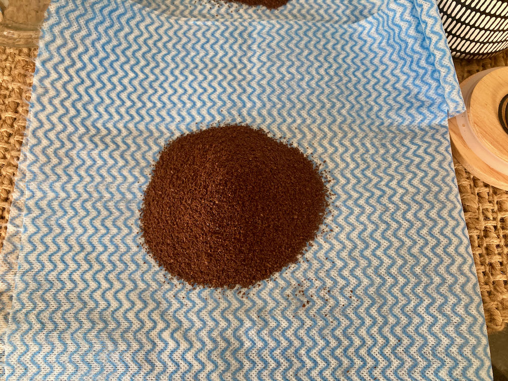 5. Fold the edges of the filter up over the coffee grounds and secure the top with a rubber band.