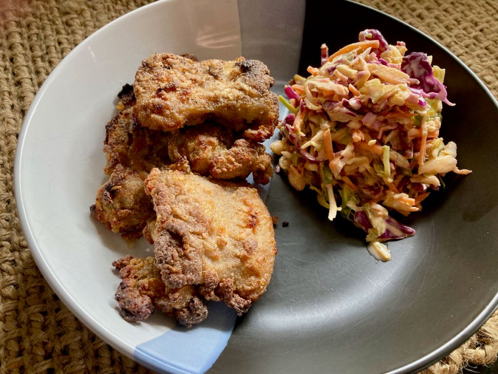 We all love a naughty takeaway, but we can all live without the extra calories and the expanding waistlines. You don’t need to live without your takeaway; swap it out for a delicious and healthier fakeaway. Thankfully, KFC was never on my junk food list, so I have never felt the need to reproduce it. The idea of fried chicken as a replacement for chicken nuggets for little people did appeal when the kids were young. I had a play around with a grain-free coating for some fried chicken that would keep the kids happy back in the day. I managed to come up with a simple coating that was light and crunchy, the coconut gives a great texture, and the flavour is a nice change from your standard heavy batter.