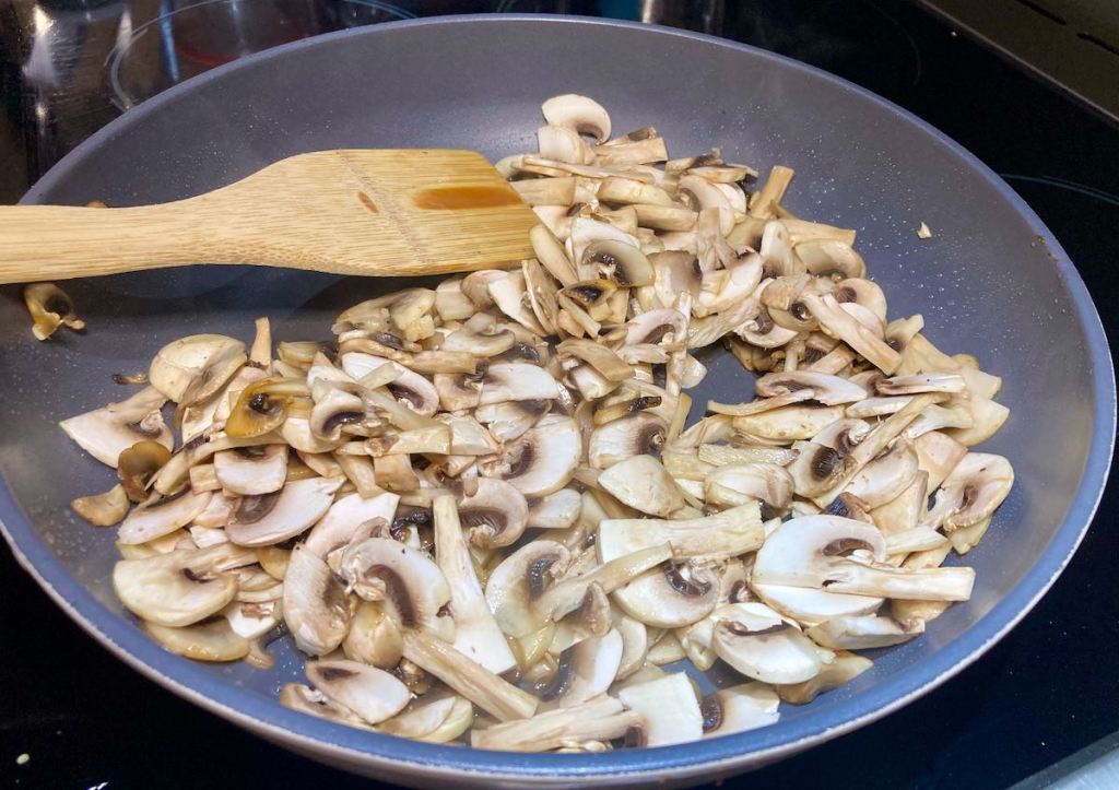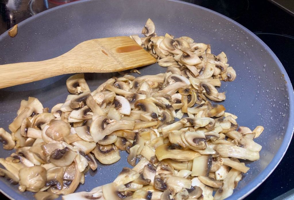 - Add the sliced mushrooms to the wok and cook them on a high heat, occasionally stirring, when they start to brown remove them from the pan and set them to one side.