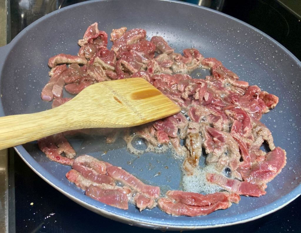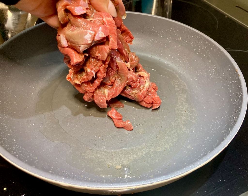 - Stir the meat and cook it until it is browned, remove the cooked meat from the pan and set to one side.