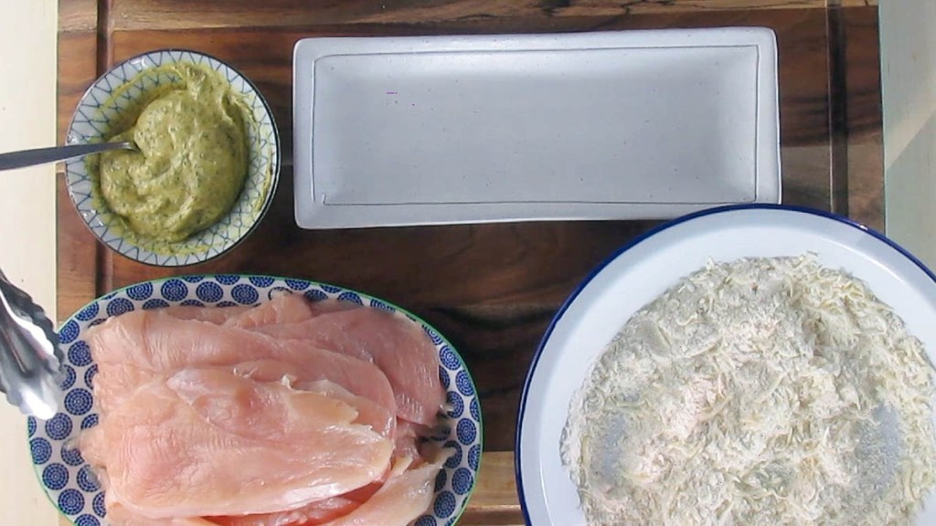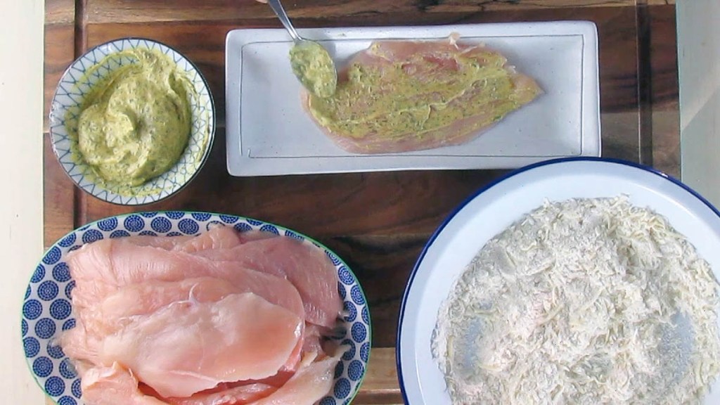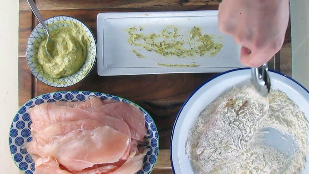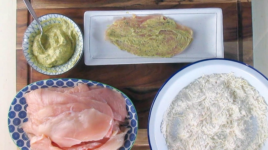 - Coat each of the chicken with the mustard and herb mix before covering the chicken in the flour and cheese mixture.