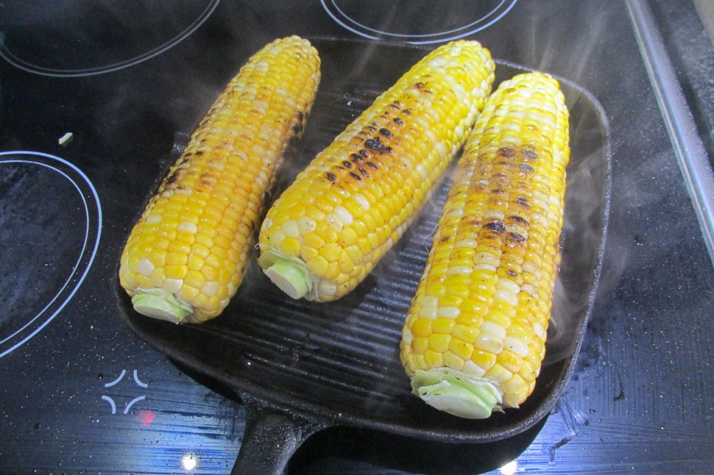 - Remove the corn from the pan or grill.
