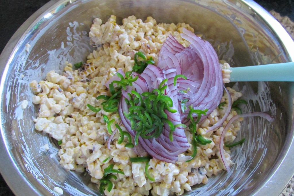 Add the coriander, jalapeño and red onion to the corn and toss to mix.