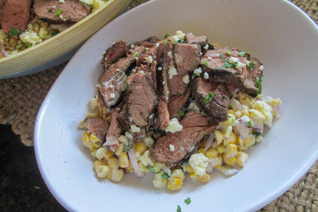 Mexican style street corn salad with steak recipe