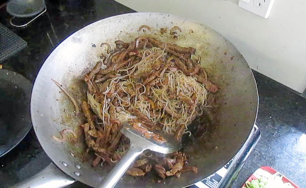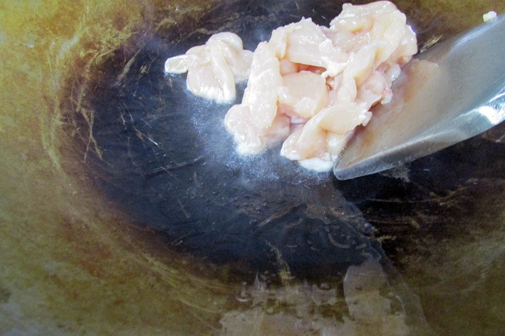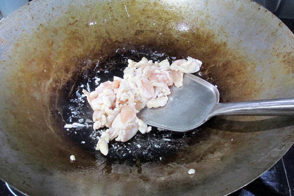 Stir the meat frequently, the heat from the wok will sear the meat quickly. Once the meat is seared, keep it moving. Let the meat cook through, this will usually take around 5 minutes. If you have a lot of meat cook it off in batches.