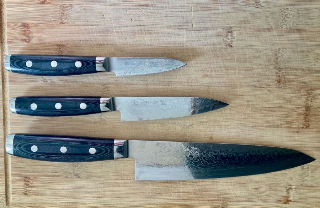 Trust me when I say that having good knives is a must, a good and sharp knife makes preparation work simple and fast. Start out with a simple set of knives and add to them as you go. Essential knives I would recommend are;