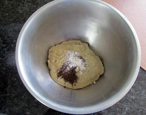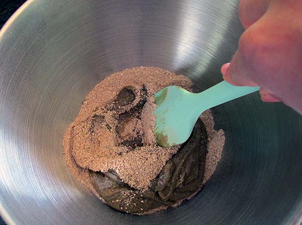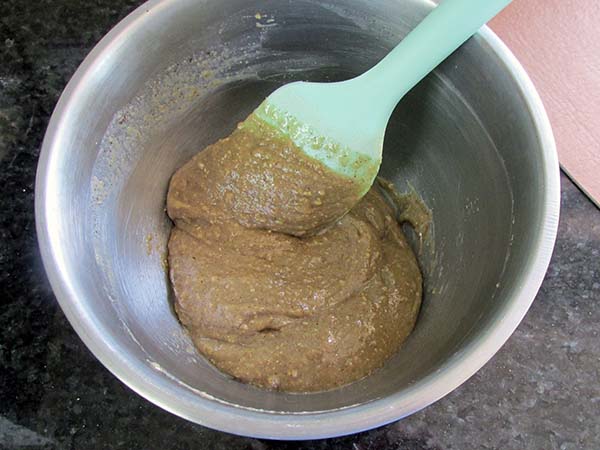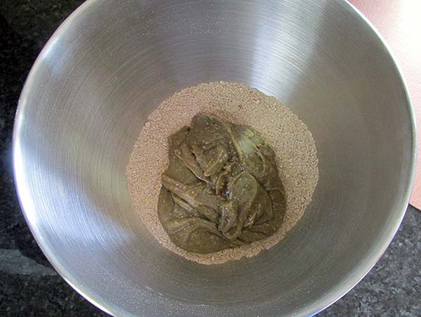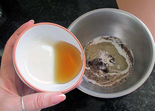 - In a separate bowl, mix your sun butter, maple syrup, coconut milk, vanilla bean powder and salt.