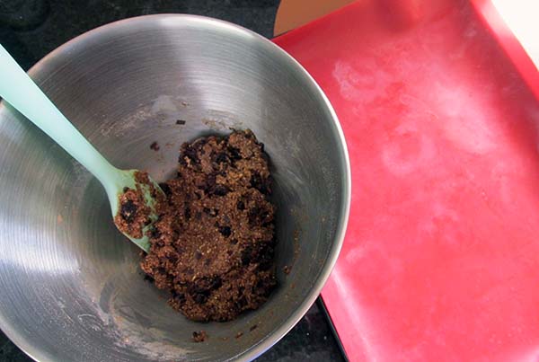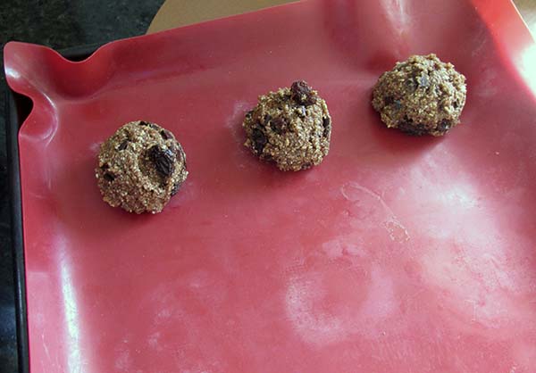 - Fold in your sultanas or choc chips, roll into cookies and place evenly on your lined trays.
