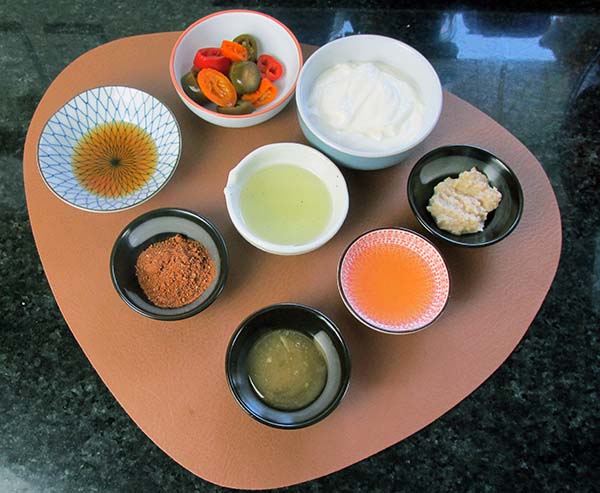 - In another bowl, whisk together the yoghurt, oil, honey, apple cider vinegar, garlic, lime juice, jalapeño, and taco seasoning.