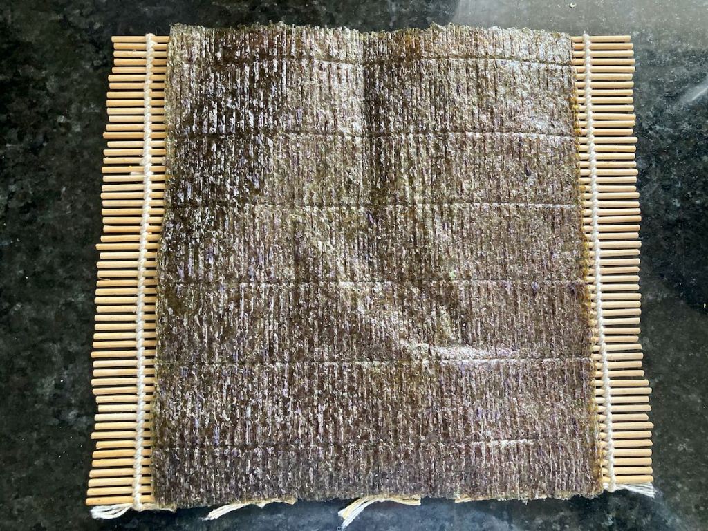 - Take a sheet of nori, and put the nori sheet smooth side down.