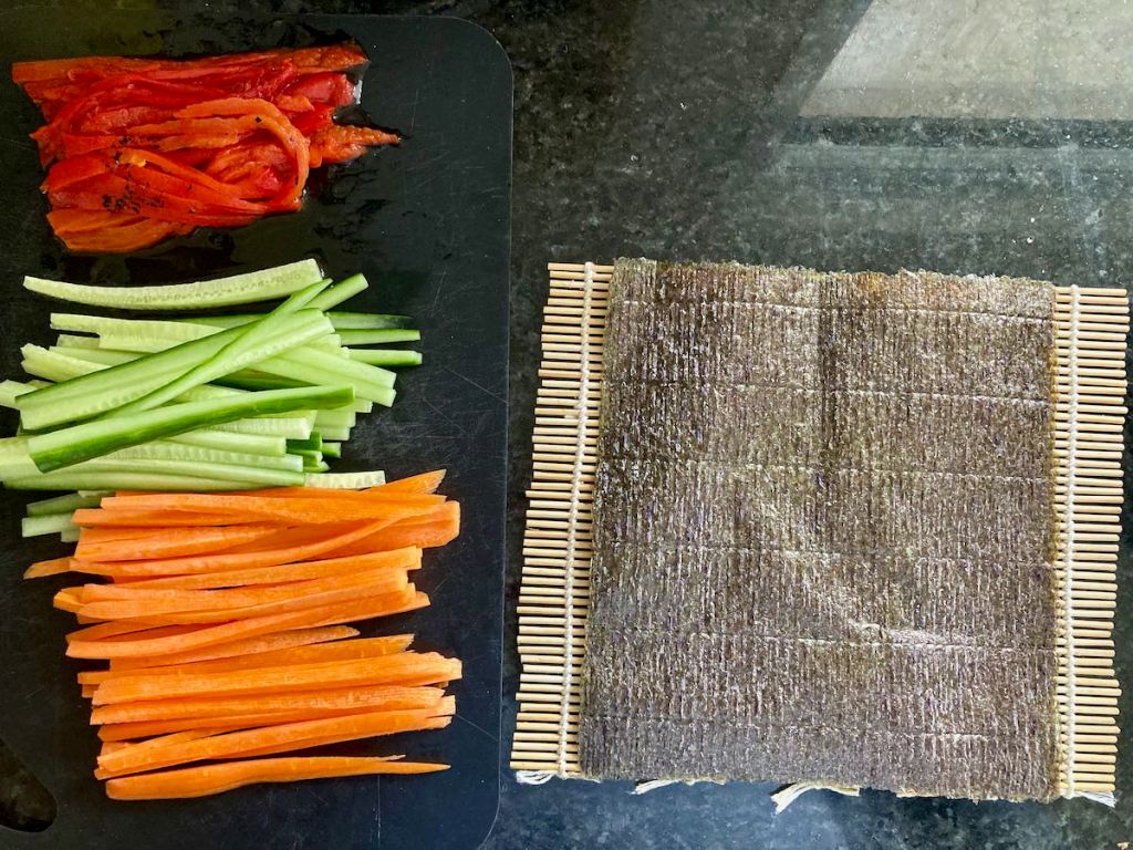 The beauty of this recipe is that you can add anything you want (within reason) to the sushi as a filling. I love to mix things up to have a mix of vegetables that are crisp, crunchy and soft, so each bite is interesting to eat and packed with flavour.