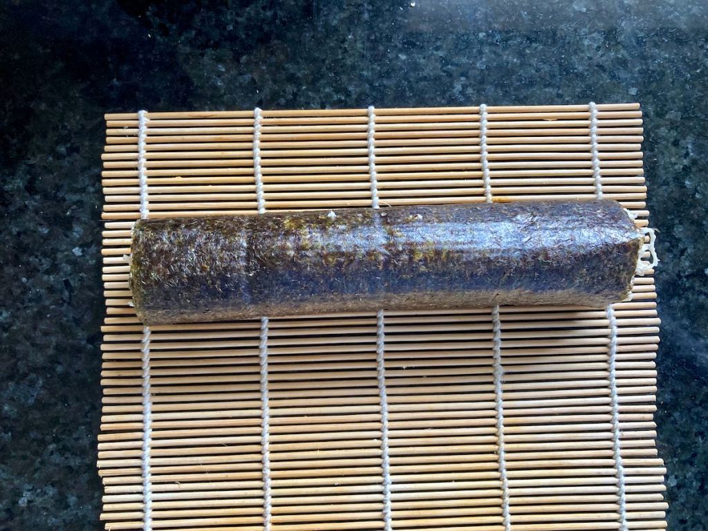 - Move slowly so that the sushi roll is even.