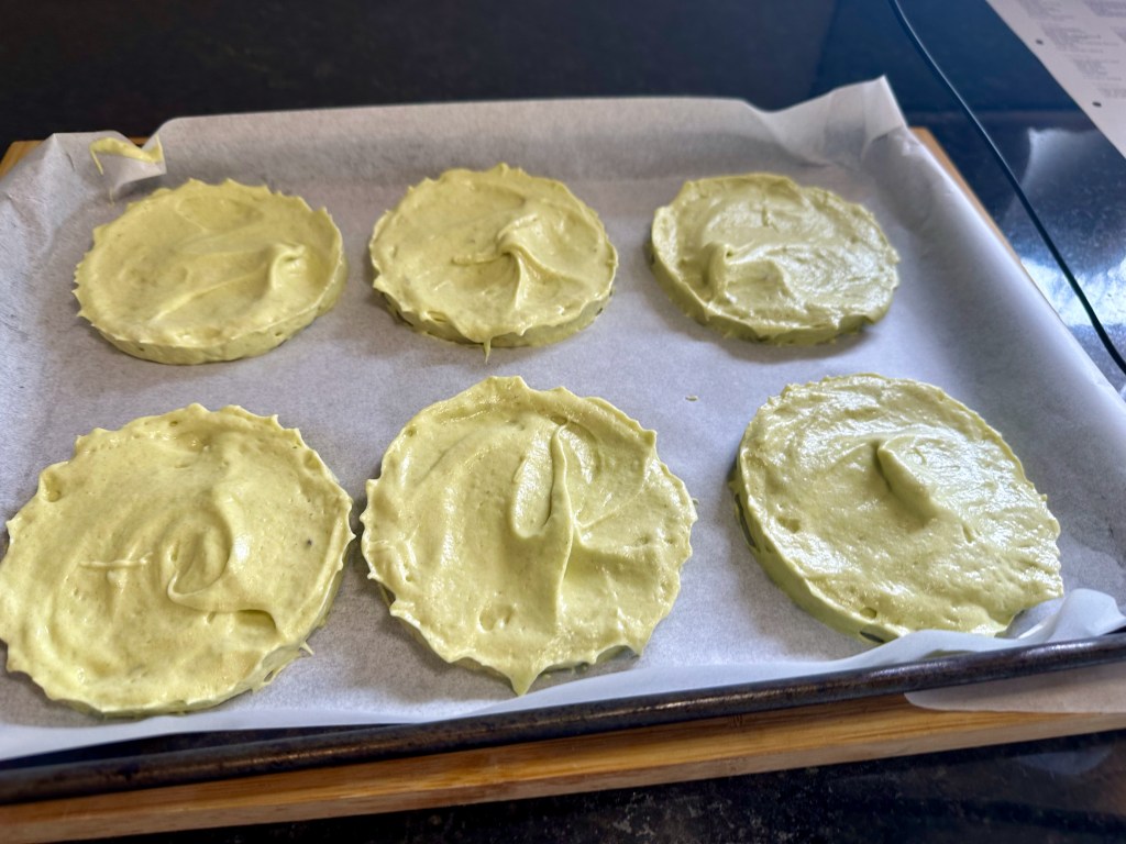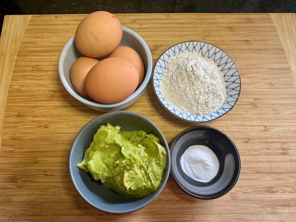 Whenever avocados are in season, I try to make the most of them. We all know that avocados have a small window of perfect ripeness, and they all hit that point simultaneously. So as not to waste them, I buy and then freeze the avocado pulp. To make my quick break a little more interesting, I’ve used some avocado pulp to make my burger buns extra. If you have fresh avocados, they also work for this recipe. If you use frozen avocado pulp, make sure it is completely thawed before folding it into the mix.