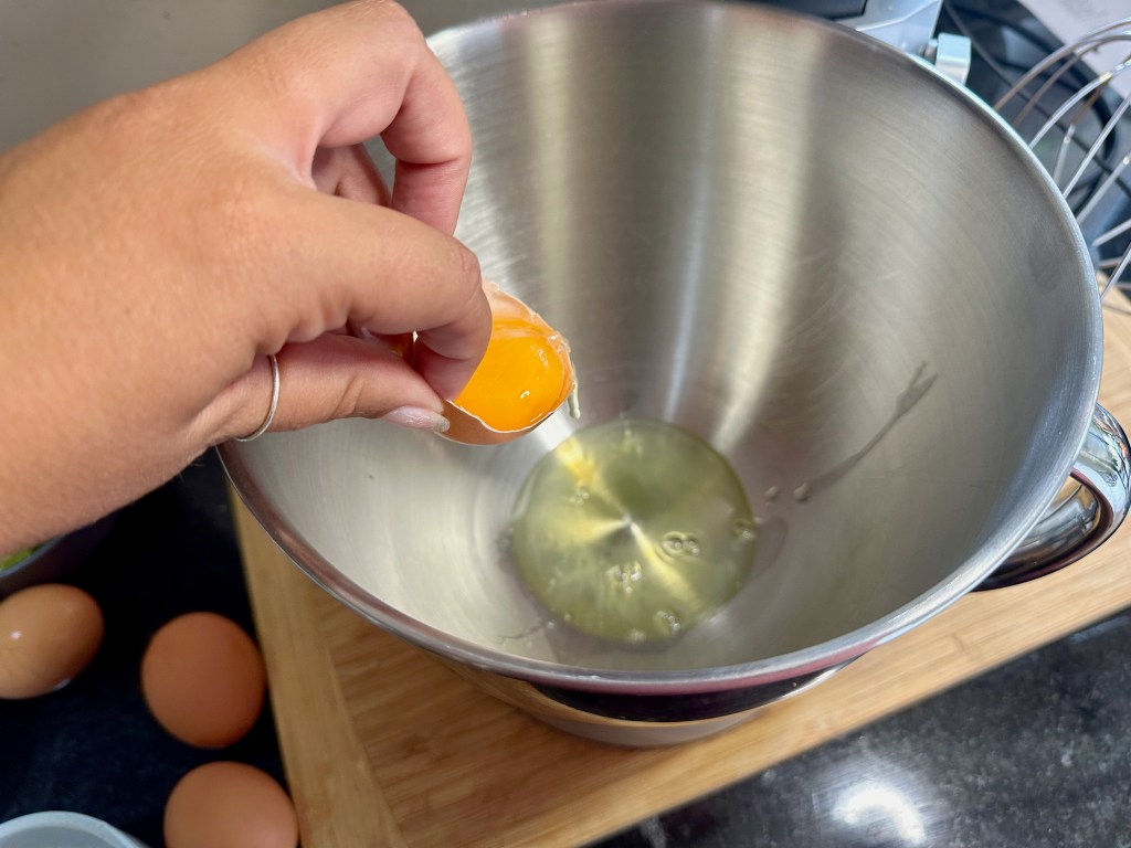- In a large mixing bowl, whisk the egg whites for 30 seconds using an electric whisk or stand mixer.