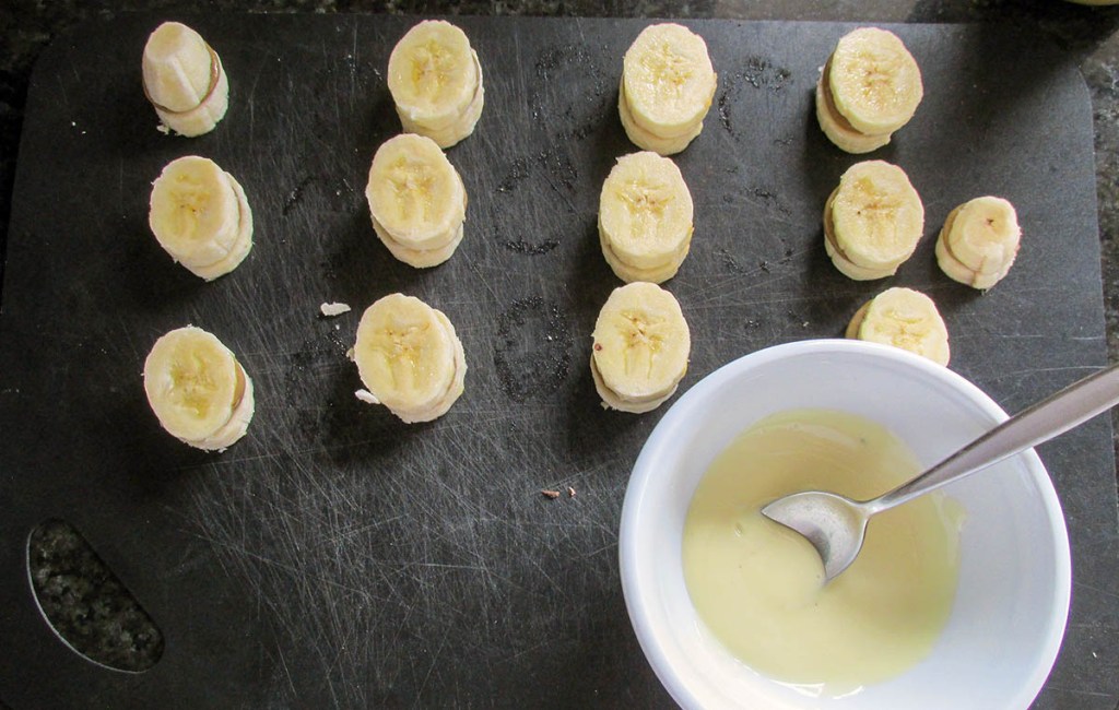 Instead of using peanut butter, I decided to use my homemade sun butter as the alternative filling on my banana bites. As I am not a milk or dark chocolate fan, I decided to use my white chocolate for a perfect coating.