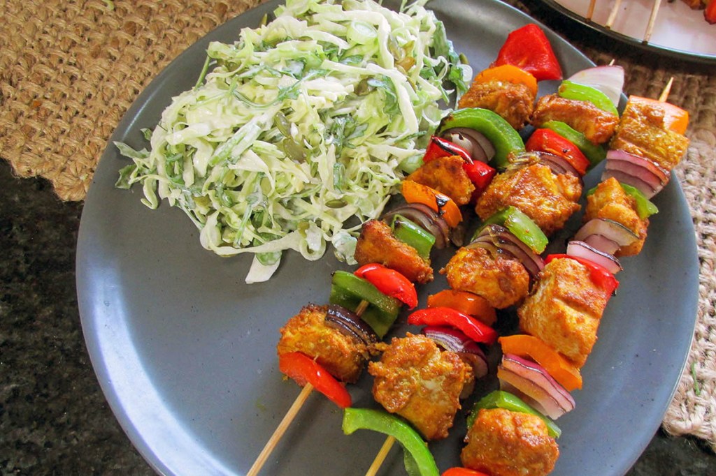 My backyard BBQ cookbook got me thinking about other foods that use smoke and flames to add more flavour to the food; the answer was reasonably obvious: tandoori. While the tandoor is made of clay and doesn’t use charcoal, the principles are the same- smoke, flames, and meat give you amazing flavours. I always have a jar of tandoori-style spice mix in my pantry to add a bit of extra spice to dinner when needed. I decided to combine BBQ and Indian inspired flavours to deliver something spicy and new for dinner.