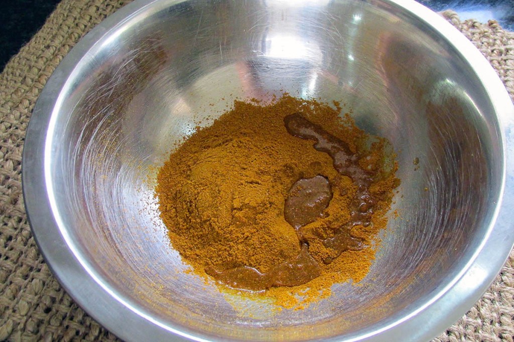 Mix together the garlic, olive oil, salt, pepper, lime juice, and tandoori spice powder in a bowl.