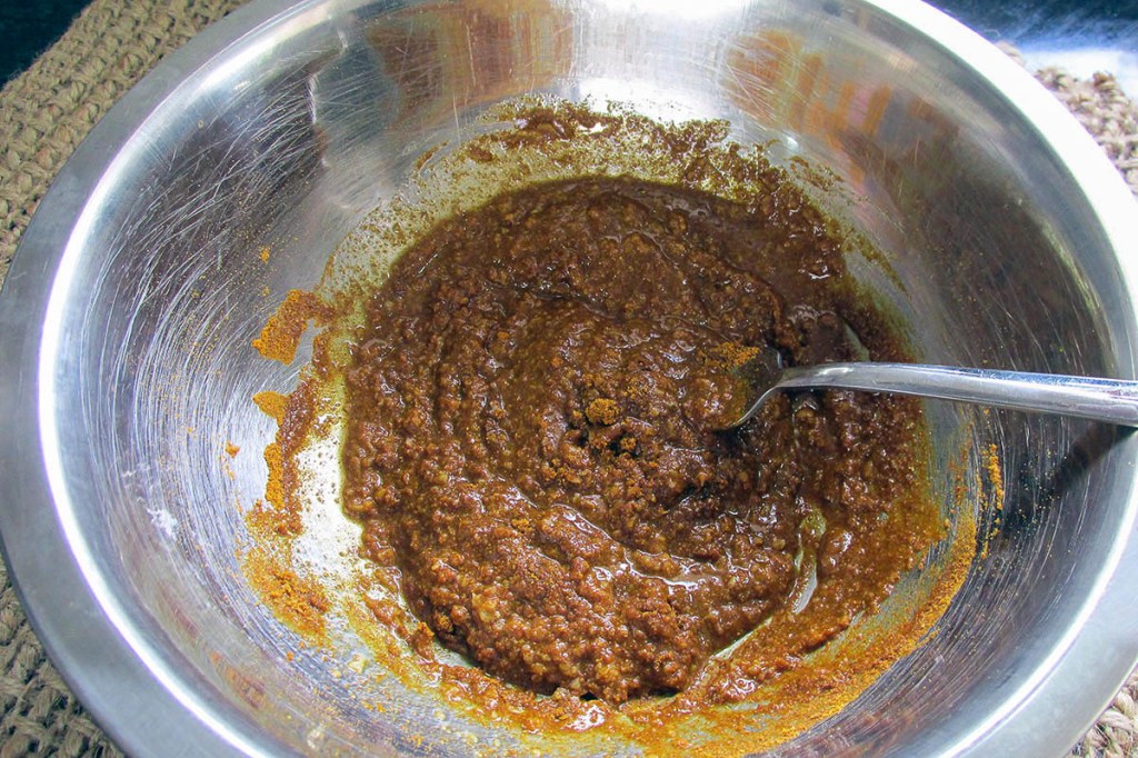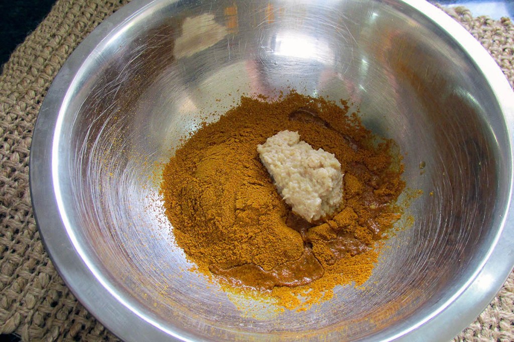 - Mix the garlic, olive oil, salt, pepper, lime juice, and tandoori paste in a bowl.