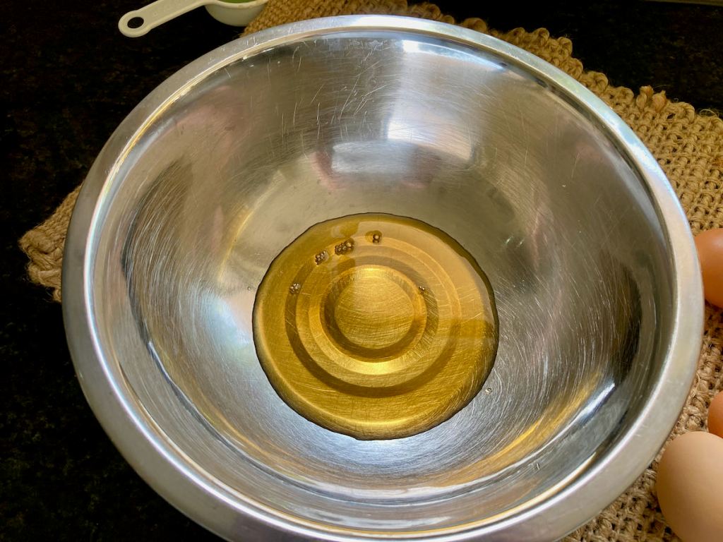 - In a medium-sized mixing bowl beat together, maple syrup and vanilla.