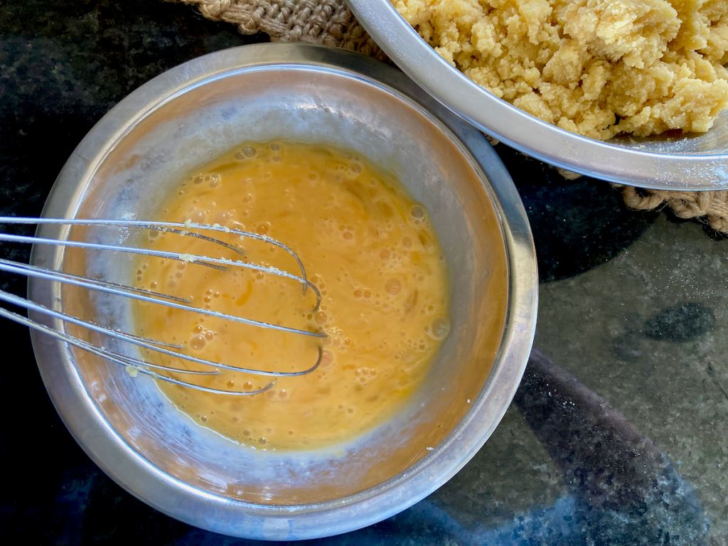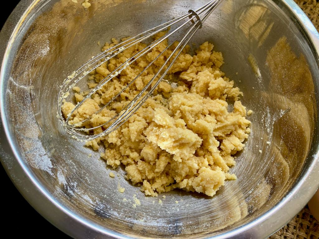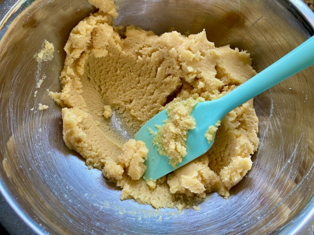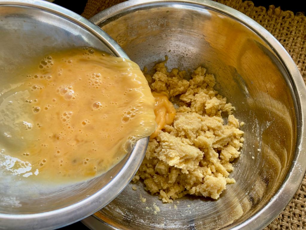 - Beat in the coconut flour then the melted butter.