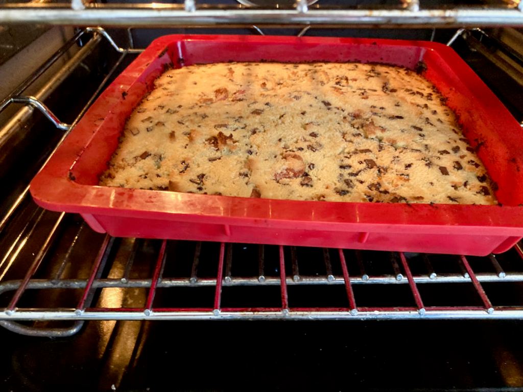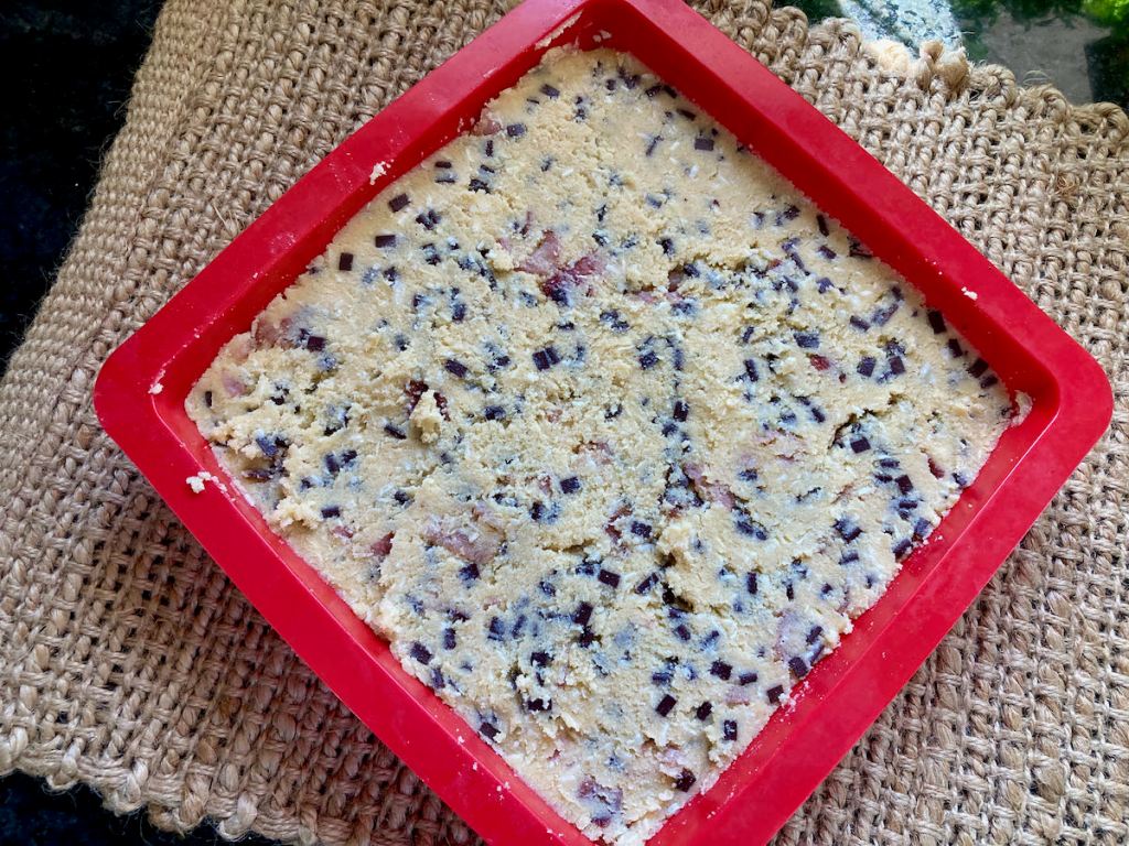 - Line a square cake tin with baking paper or a silicone liner.