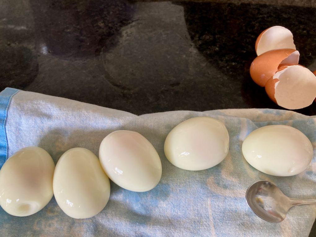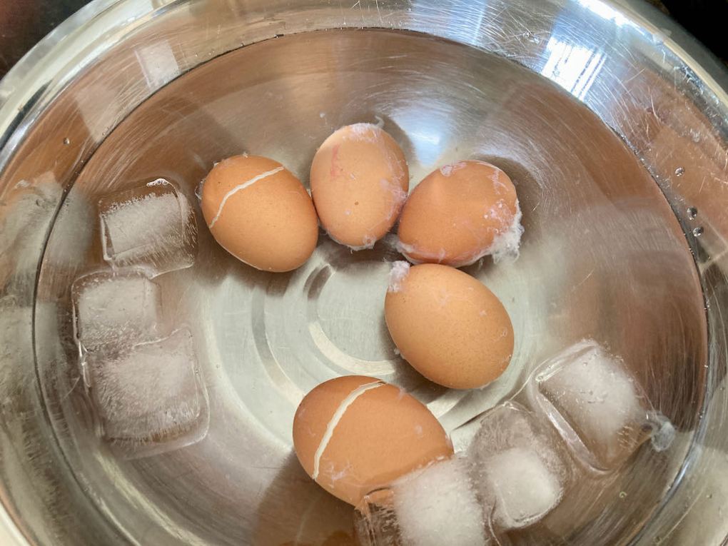 Place the eggs into an ice bath as quickly as possible.Perfect eggs peeled and ready to eat