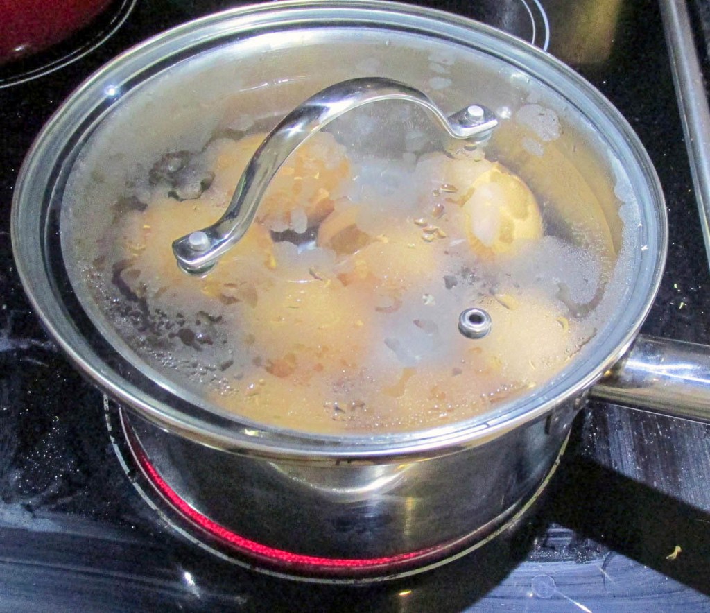 As soon as the pressure has dropped, remove the eggs from the pressure cooker using the tongs.