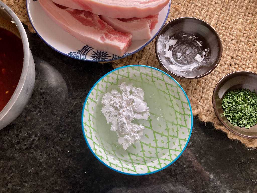 - In the same frying pan, add some oil and fry off the sweet potato pieces until they are crisp, then drain on some kitchen paper.