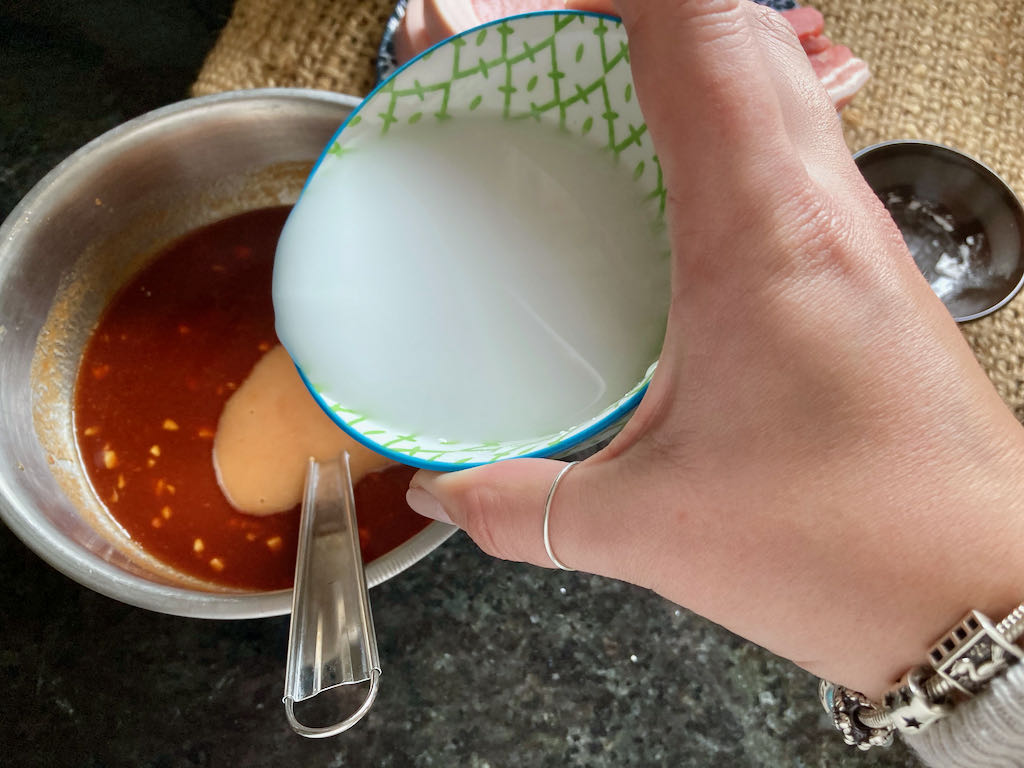 - While mixing the salad, boil a pan of water, ready to poach the eggs.